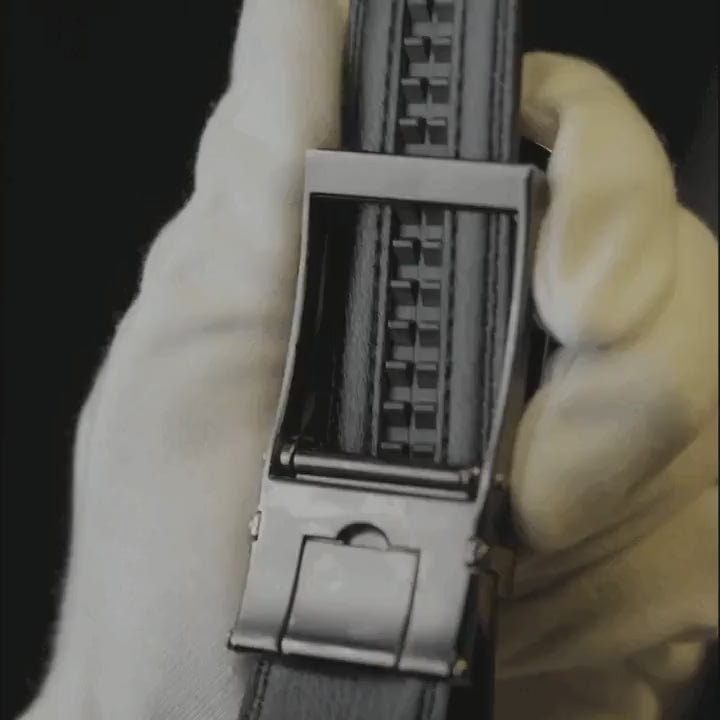 Genießen Sie einen Gürtel mit einem automatischen System, das sich mit jedem Klick millimetergenau verstellt – ganz ohne Löcher oder Kraftaufwand.